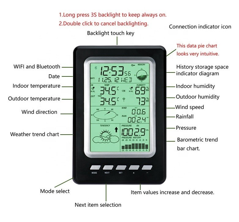 Ingebouwde anti-regen- en anti-UV-corrosie van de veranda,meting van luchttemperatuur, vochtigheid