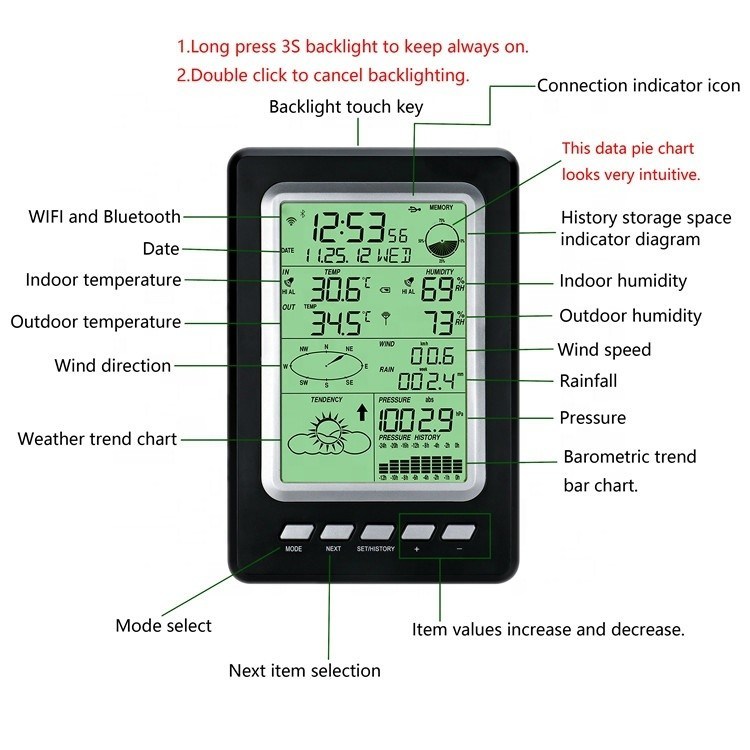 Draadloos WIFI en mobiele APP voor het bekijken van gegevens