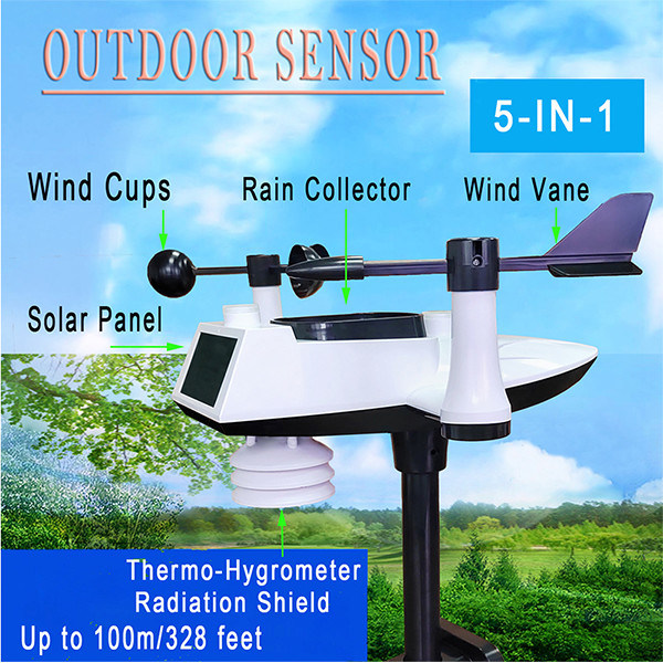 2De detectiefuncties van deze machine zijn: temperatuur, vochtigheid, windsnelheid, windrichting, regenval, verlichting, ultraviolette straling.